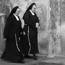 Most of the euphemistically-titled “loss control specialists” wear standard-issue rent-a-cop outfits, but two stand out from the bland crowd; Sister Mary Joseph Arimathea and Sister Mary Clarus, who wear the grey, white and black habits of the Society of the Sisters of the Most Precious Blood.